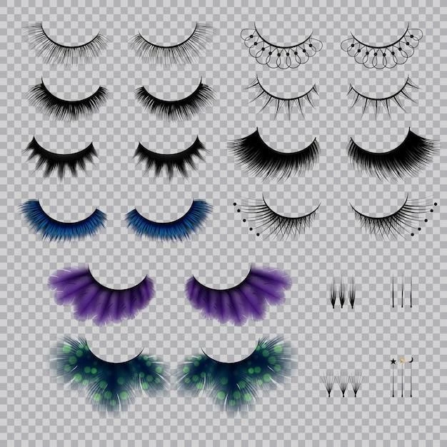 - Искусственные ресницы⁚ для 5D объема обычно используются ультратонкие ресницы толщиной 0,07 мм, что позволяет избежать излишней нагрузки на натуральные ресницы.